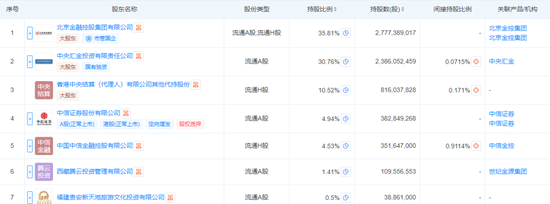 资料显示,中信建投为中央汇金投资有限责任公司(下称“中央汇金”)直接持股的三家“汇金系”券商之一,截至三季度末中央汇金的持股比例为30.76%,为第二大股东。第一大股东为北京国资背景的北京金融控股集团有限公司,持股35.81%。