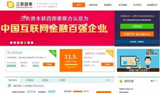 据三农资本官网、微信公号介绍,其是全国首家PE背景服务三农、小微金融平台,获得安徽太平洋基金战略风投,由汇付天下实行资金三方托管、是iTrust互联网信用评价中心AA评级企业,创新引入收益类债权、保理类债权、委托定投类项目、商业保理公司、基金公司、国有担保公司作为债权转让方及担保方,并以风险保障金实时垫付,为雄厚的民间资本提供高效实用的信息对接服务,“预期年化收益率12%-18%”。