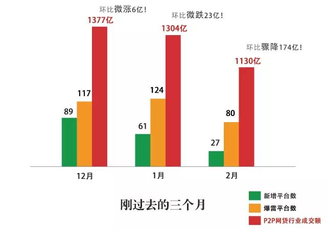 2016年2月,P2P网贷行业成交额1130亿,环比骤降174亿!