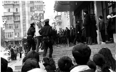 法庭外的荷枪警务人员有增无减,法庭内更是剑拔弩张:律师屡屡抗议,审判长——小河区法院刑庭女法官黄敏,频频敲响法槌,对辩护律师提出口头警告、训诫多达十余人次,并当场将3名辩护律师逐出法庭。