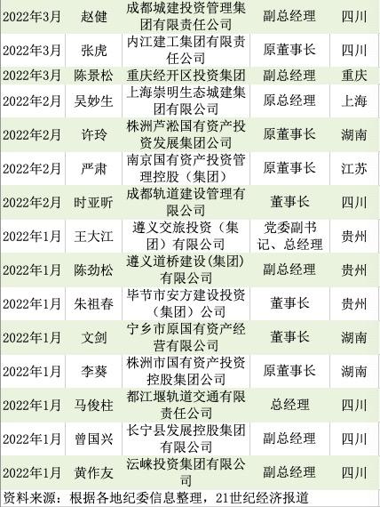 值得注意的是,上述43人均为在城投公司担任董事长、总经理、副总、总经理助理及党委委员的高管。实际上,部分城投公司中层干部也成为审查的重点。